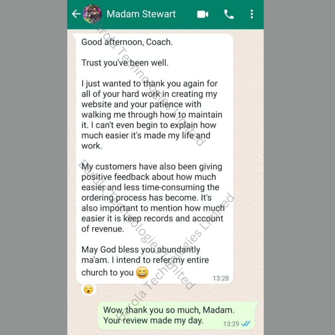 From clients writing us nice reviews to having a client grant an interview with ThisDay Newspaper to rave about our services, you can be sure that we know what we are doing. These are just a few of our glowing testimonials.
